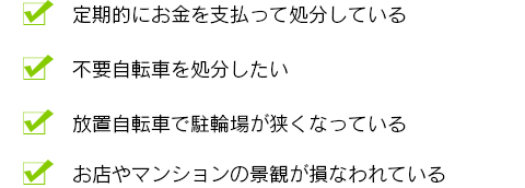 自転車の回収は状況に合わせた様々な対応が必要ですので、お気軽にご相談ください。