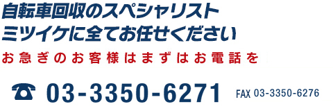 ミツイケは全国の不要自転車・放置自転車の「買取・回収」を行っています。
